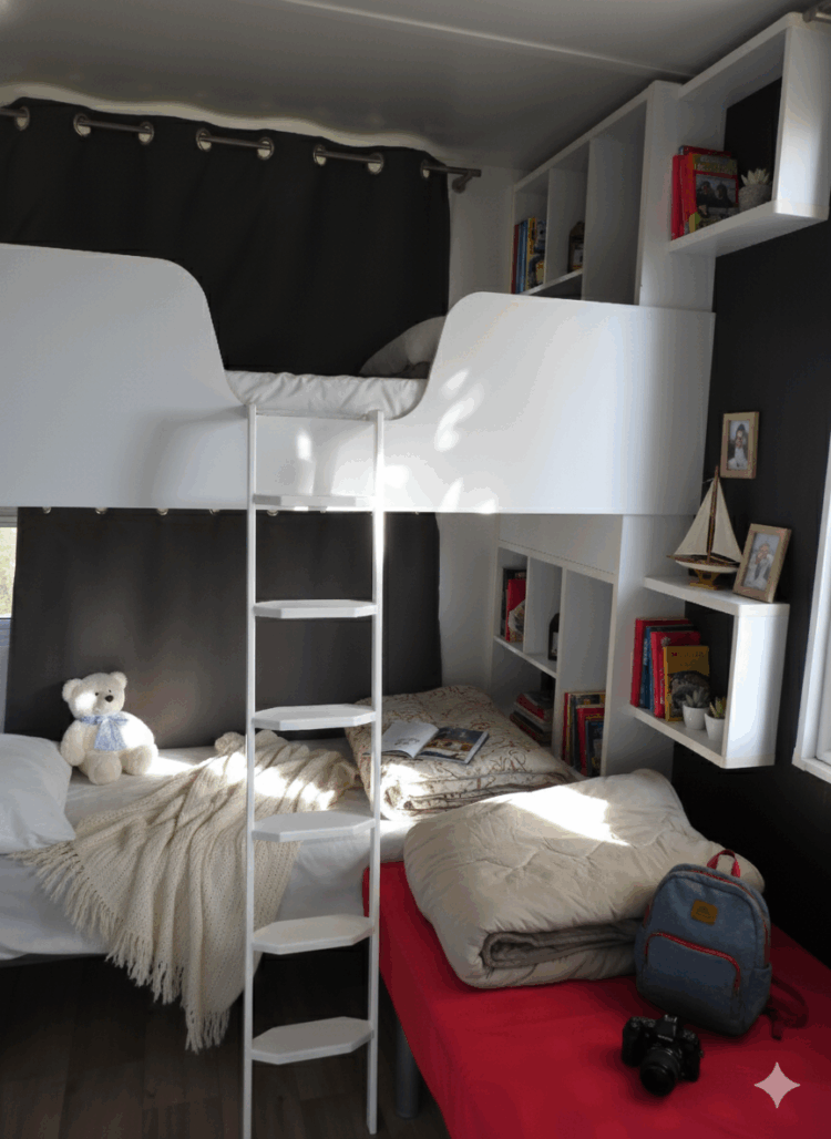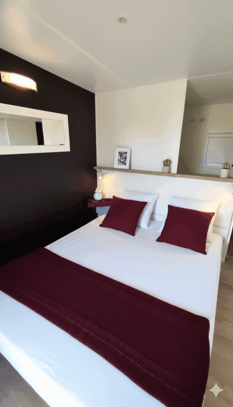 Retrouvez-vous entre amis ou en famille nombreuse dans les 2 chambres de notre Loisir Prestige TAOS 5 dédié à la décompression dans une ambiance moderne et design.